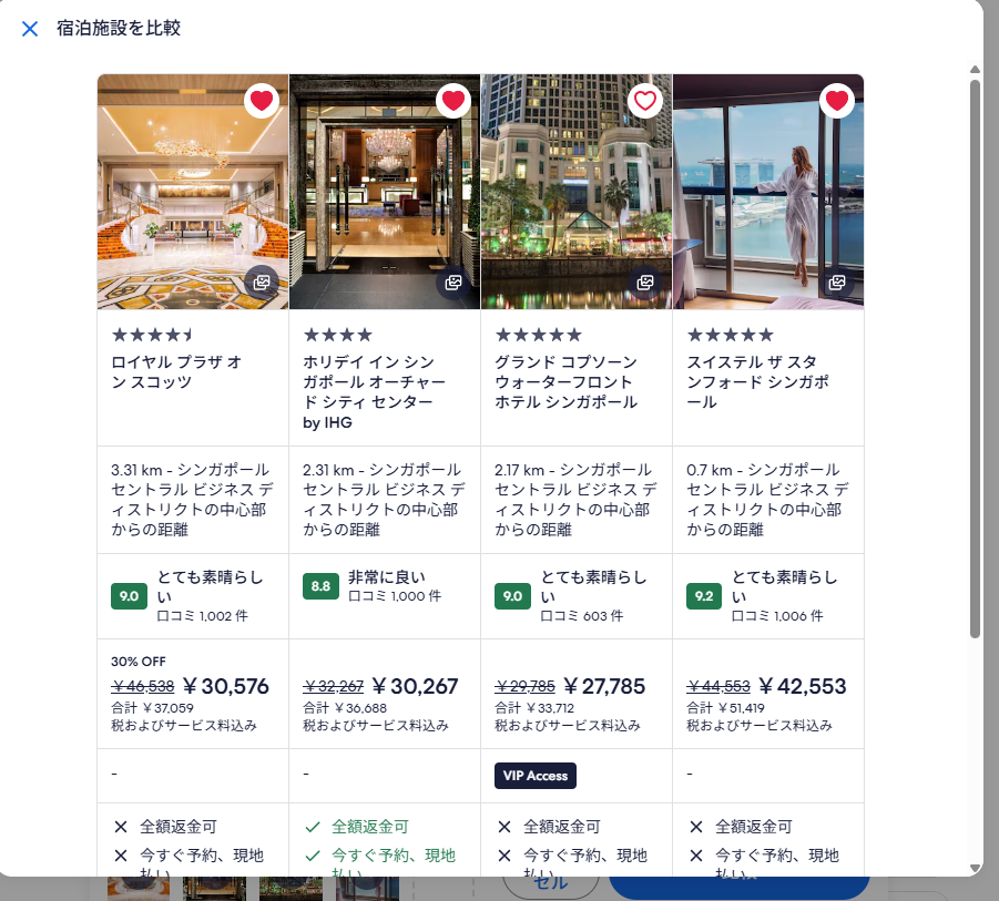 候補のホテルがいくつか見えてきました。